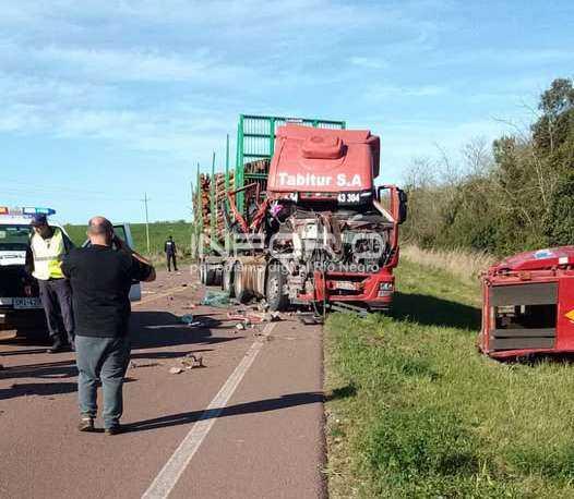 Choque en la ruta 20 km 52 (Departamento de Río Negro), cerca de Nuevo Berlín; donde hubo un siniestro de tránsito y la ruta se encuentra cortada en ambos sentidos.El choque de un camión "Triten" cargado de madera al adelantar colisiona con una Enfardadora tirada por un tractor. A quienes tengna que circu...