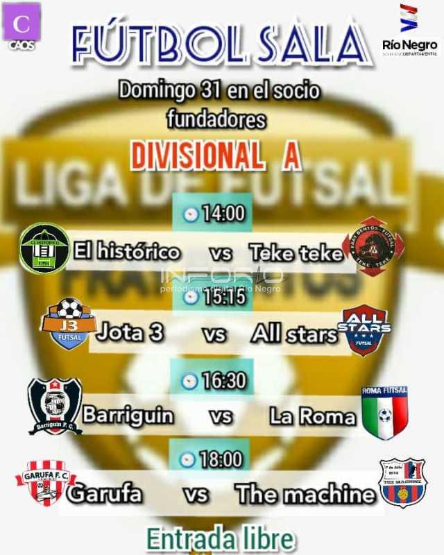 Con gran suceso continúa la Liga de Futsal Fraybentina en la rama Masculina, con 18 equipos; como cada domingo en el estadio Socios Fundadores de Anastasia, con 8 partidos recorridos, que comienzan éste domingo a las 09:00 de la mañana.