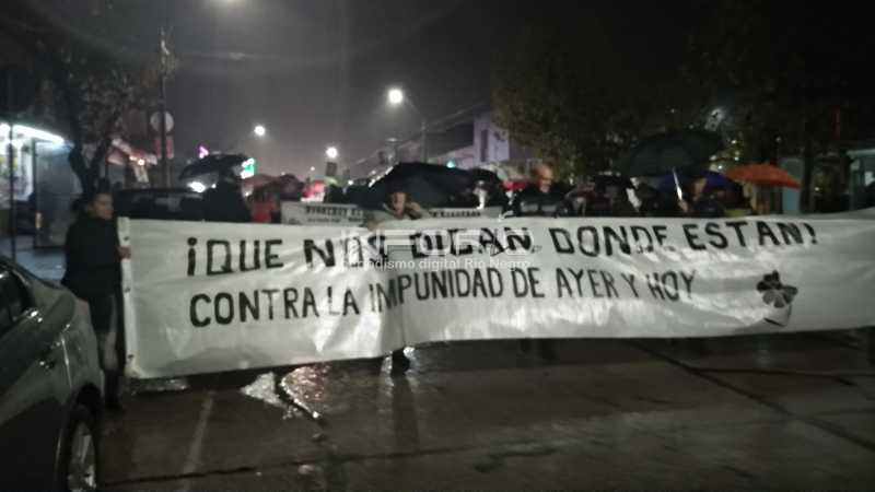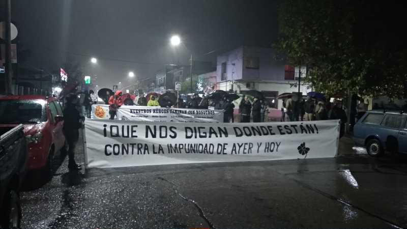En medio de la lluvia los vecinos marcharon con pancartas recordando a los desaparecidos. A nivel nacional la convocatoria realizada por 24o año consecutivo tenia como slogan en esta marcha del silencio "Que nos digan donde están! Contra la impunidad de ayer y hoy".
