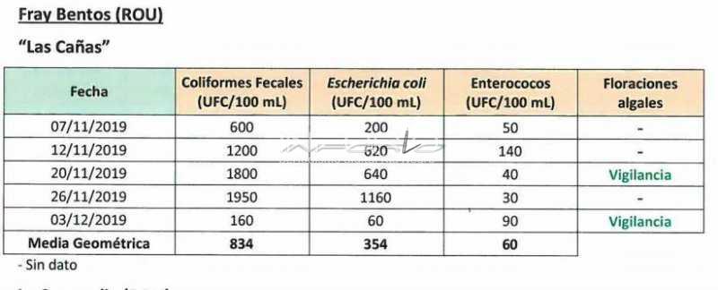 La Comisión Administradora del Río Uruguay (CARU) divulgó los datos de monitoreo y control de playas correspondientes al 3 de diciembre y bajó notoriamente la presencia de coliformes y escherichia Coli.