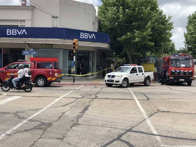 Sobre el mediodía del sábado, policía y bomberos se hicieron presentes en la sucursal Fray Bentos del BBVA, ante el llamado de una vecina que advirtió un fuerte olor a gas en momentos en que concurrio al cajero.