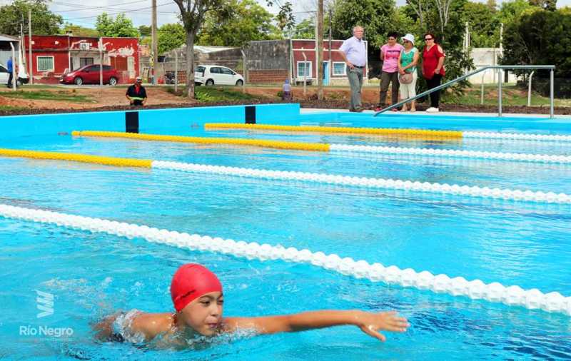 El complejo consta de piscina para baños recreativos y usos deportivos, está diseñado atendiendo la concepción de accesibilidad universal tanto en el acceso a la piscina como en las baterías de baños y ducheros. Además posee vestuarios y una sala de profesores, los que impartirán clases de natación en los horarios comprendidos entre las 09.00 y las 12.00 hs. y las 16.00 y las 19 hs. Esta mañana los docentes Bruno Castromán y Lorena Arévalo, realizaron la primera clase de la disciplina, y los primeros alumnos, cuatro niños pletóricos de felicidad, recibieron la instrucción.