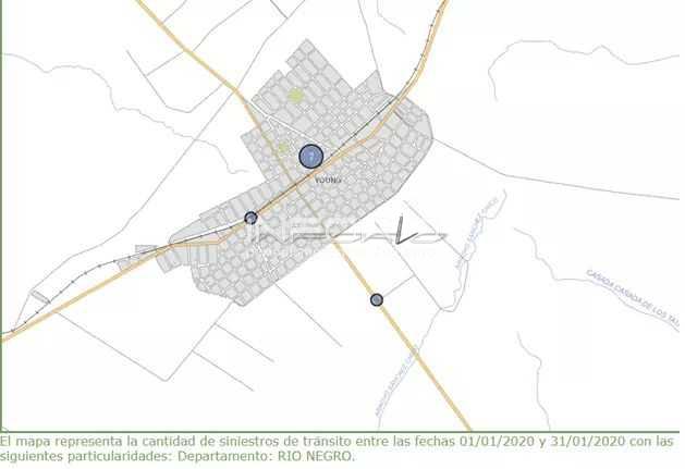 En diciembre se registraron, según el SINATRÁN (Sistema Nacional de Tránsito) 13 siniestros en Fray Bentos y 8 en planta urbana de Young, pudiendo observarse en el mapa los lugares de mayor incidencia.