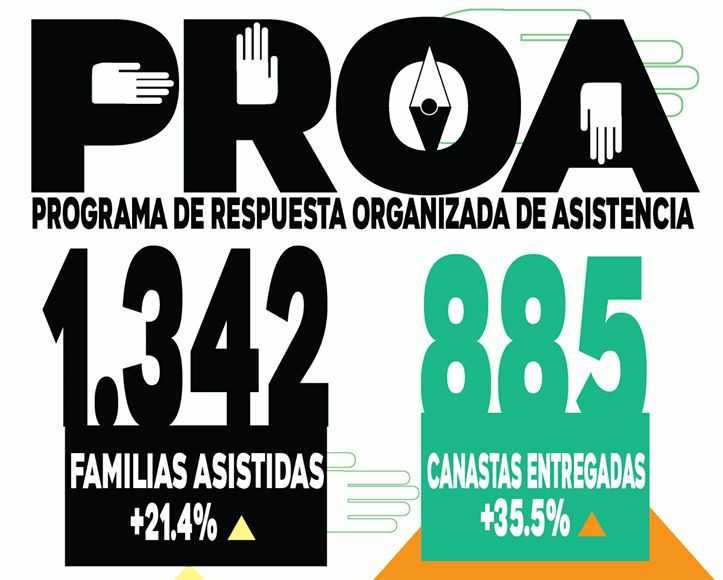 El PROA (Programa de Respuesta Organizada de Asistencia) brindó su segundo informe donde se establece que las familias asistidas aumentaron 21,4% y las canastas entregadas aumentaron un 33,4%.