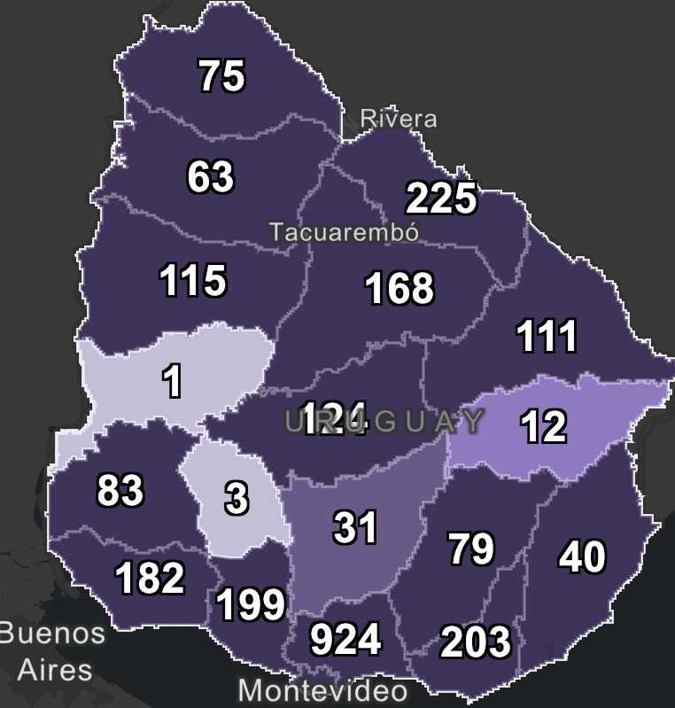 De acuerdo a la información proporcionada por el Ministerio de Salud Pública (MSP), hoy se llevaron a cabo 5817 análisis y se detectaron 579 nuevos casos de Coronavirus COVID-19. De los 579 casos nuevos, 264 son de Montevideo, 110 de Canelones, 30 de Rivera, 27 de San José, 21 de Paysandú, 20 de Maldonado, 18 de Colonia, 17 de Tacuarembó, 15 de Artigas, 14 de Cerro Largo, 10 de Durazno, 10 de Lavalleja, 7 de Soriano, 6 de Rocha, 4 de Salto, 3 de Florida y 3 de Treinta y Tres. En todos los casos se trabaja en un estricto seguimiento epidemiológico.