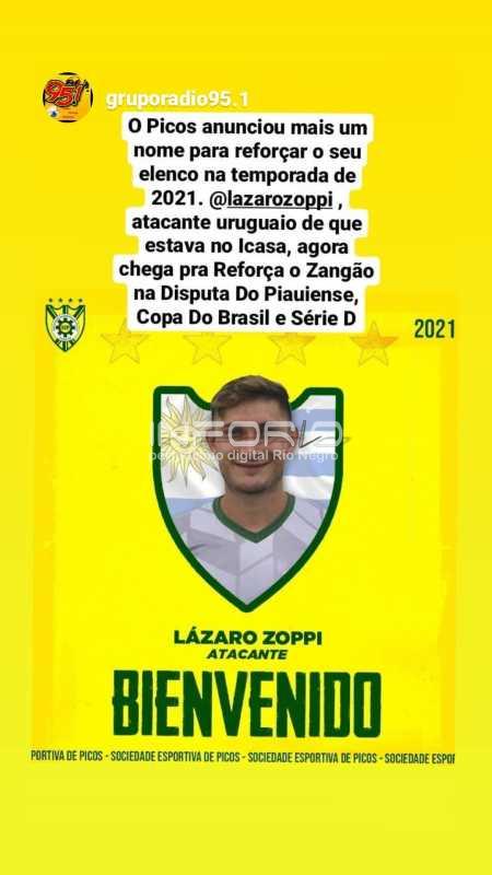 Lázaro Zoppi Laquintana, delantero fraybentino que estuvo en Icasa ( y cesó su participación pues se suspendió el Torneo por el avance del Covid-19 en el estado de Ceará), llega ahora como noveno contratista para el sector atacante. Este es el fichaje número 33 del club para el período de fichajes. Para debutar con el dron, el deportista esperará su regularización del BID, de la CBF.