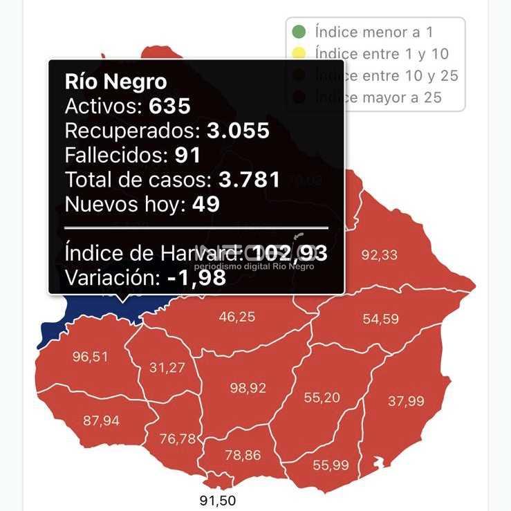 Al día de hoy en los 19 departamentos se registran casos activos.
