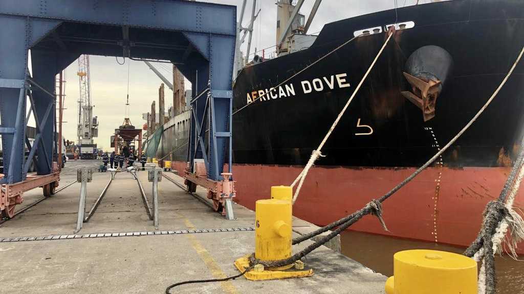 En el Puerto de Fray Bentos se encuentra operando el buque African Dove, el cual está realizando una descarga de Carbón a camiones que se dirigen con destino a Paysandú.