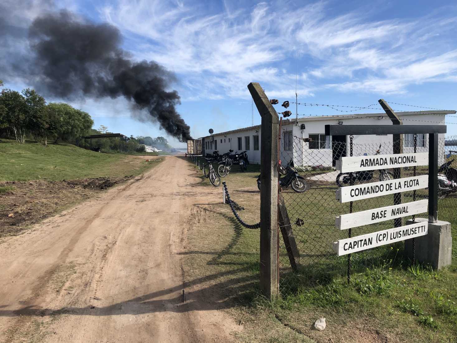 El fuego se desarrolló en un container marítimo ubicado al lado de las instalaciones que utiliza personal de la Armada y en el espacio donde se construye la futura base naval del Río Uruguay. En el interior se encontraban no menos de 10 cilindros y garrafas con gas GLP y dos bladers con restos de combustibles. Además, había más de 200 litros de nafta en tarrinas de 30 litros. En el intento de controlar el fuego, resultó lesionado un marinero que fue trasladado al hospital de Fray Bentos con quemaduras en sus manos. Bomberos trabajó en la extinción, que logró hacer efectiva sobre el mediodía empleando agua y espuma.