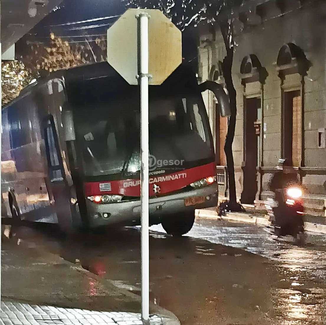 En horas de la madrugada de este miércoles un ómnibus que circulaba por calle José Enrique Rodó antes de llegar a la intersección con 28 de Febrero en Mercedes, quedó "varado".