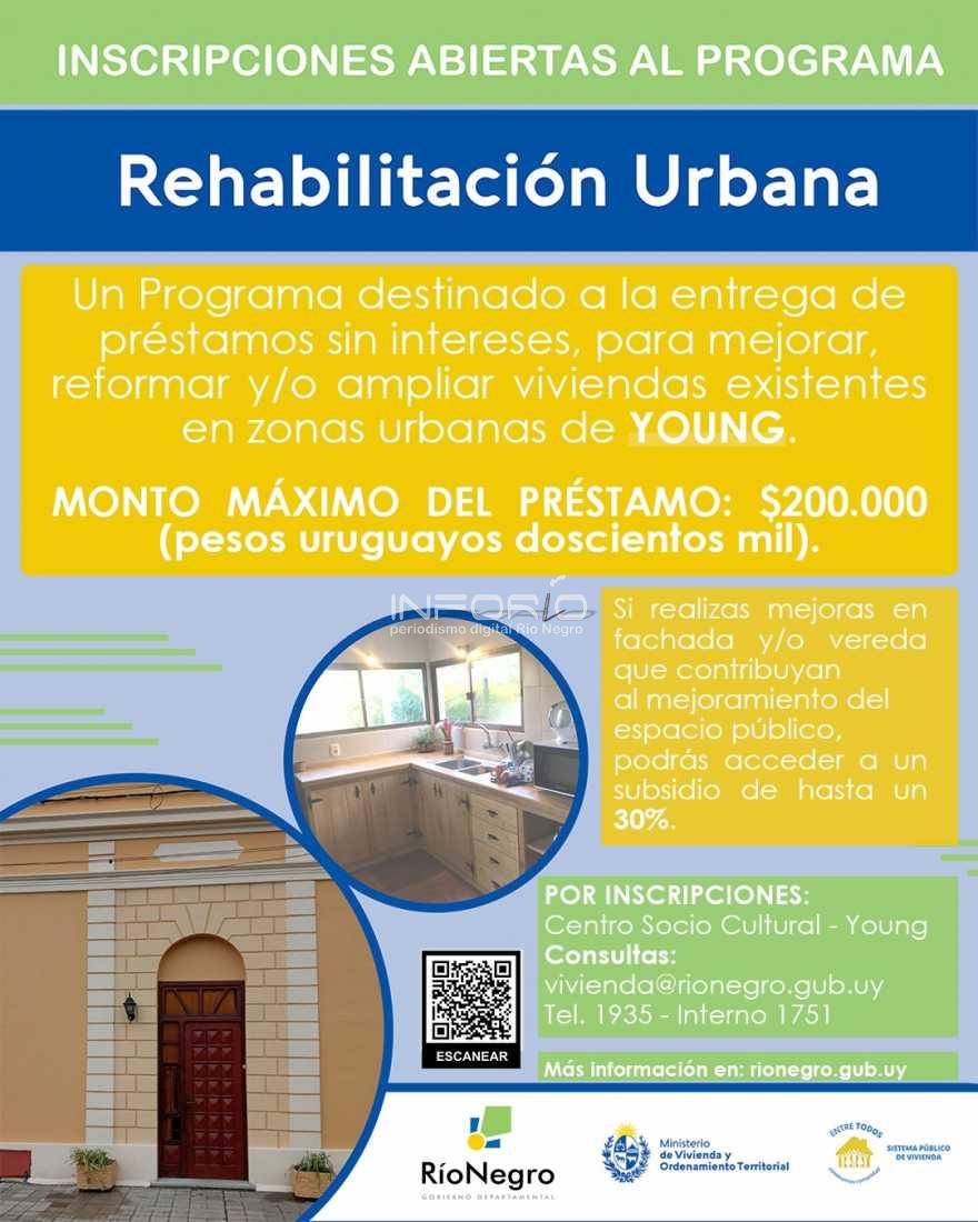 Se encuentra en vigencia el programa de Rehabilitación Urbana para Young y San Javier. Este programa consiste en destinar préstamos sin intereses para mejorar, reformar y/o ampliar viviendas existentes en zonas urbanas como en este caso lo son Young y San Javier.
