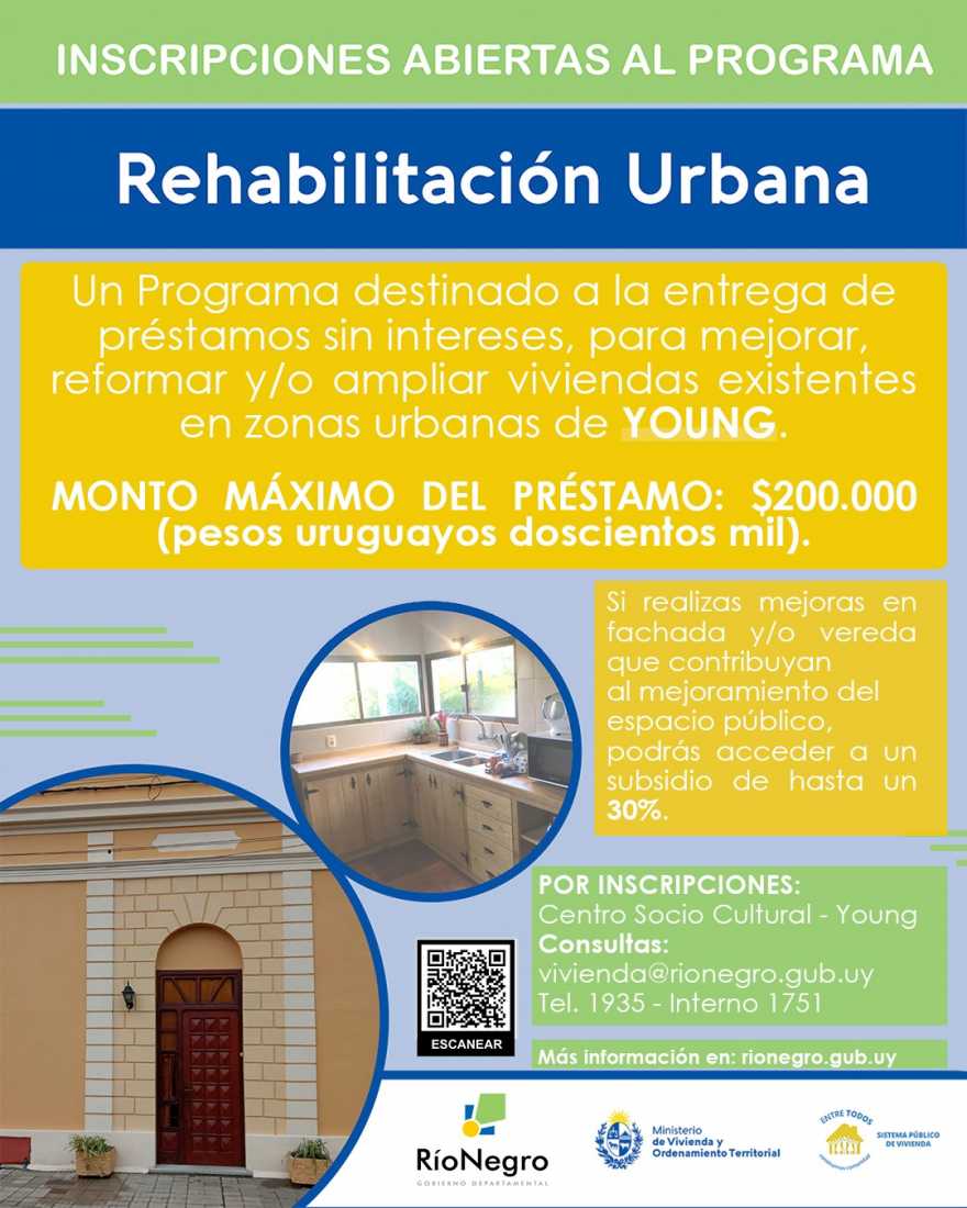 Por inscripciones en Young: Centro Socio Cultural o mediante vivienda@rionegro.gub.uy o al tel 1935 interno 1751