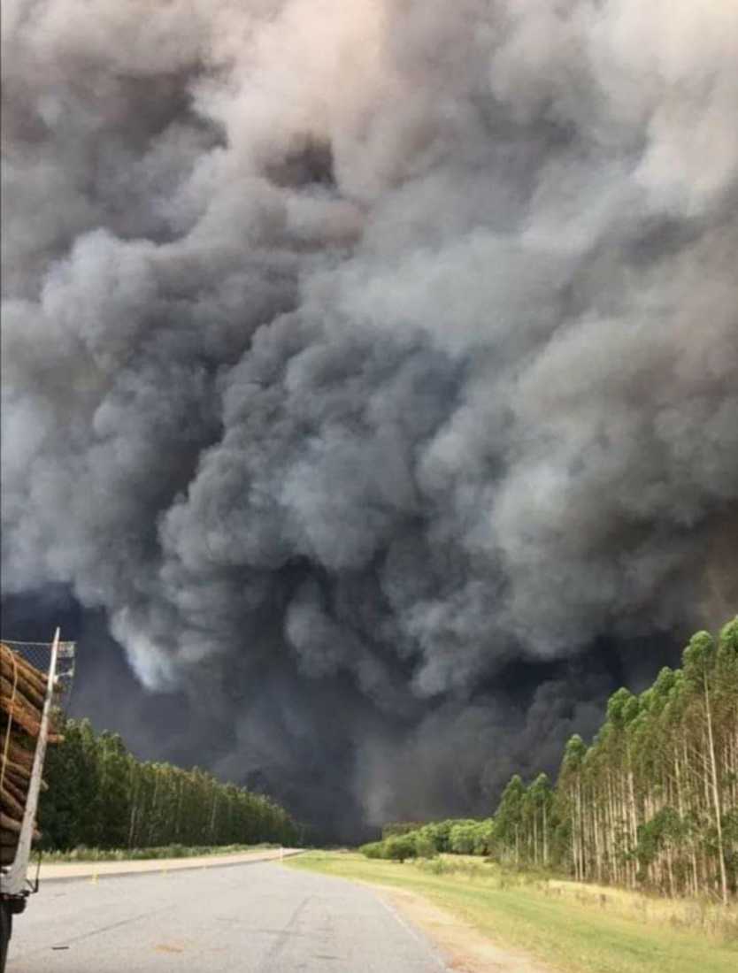 Aviones, helicópteros, camiones cisterna y cuadrillas de UPM (Forestal Oriental) y Montes del Plata, colaboran con el incendio originado en un campo de la Caja notarial.