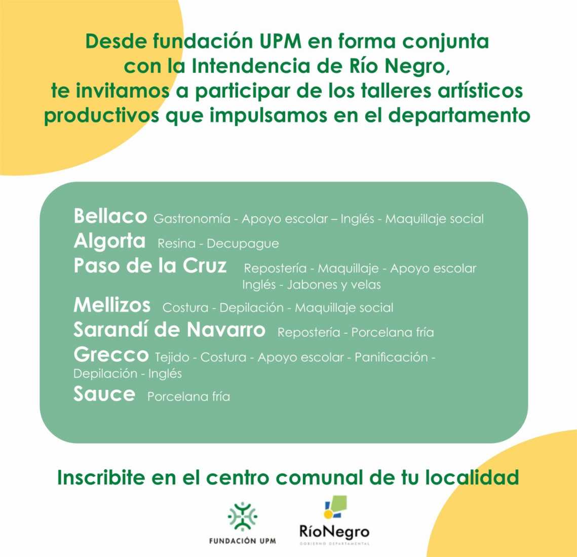 La Fundación UPM y la Intendencia de Río Negro impulsan una serie de Talleres Artísticos y Productivos en diferentes localidades del interior del departamento de Río Negro.