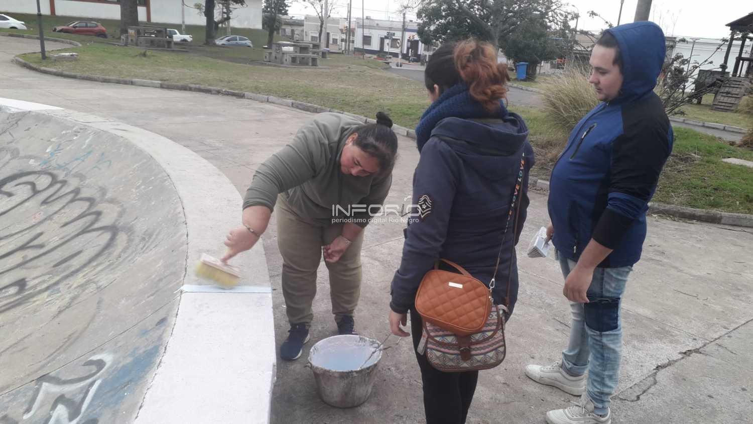 Buscando realizar un aporte a la comunidad, reflejada en mejorar los espacios públicos, el grupo Madres por el Techo aportó su trabajo para pintar la pista de skate y toda la zona cercana a canteros y delimitación de la plaza Risso Canyasso, un lugar donde asisten muchos jóvenes de Fray Bentos.