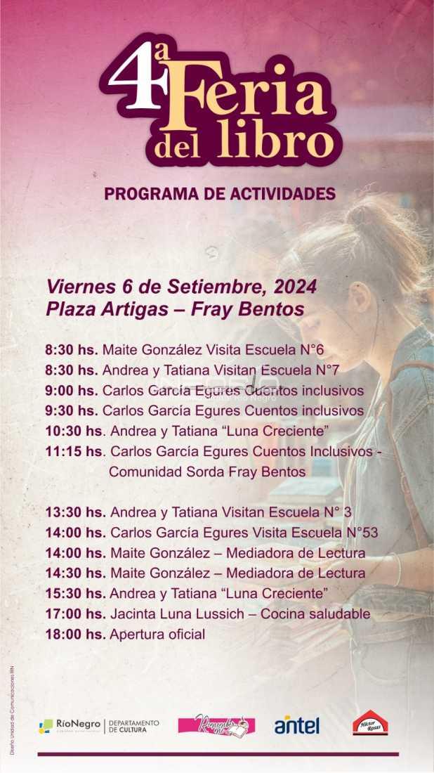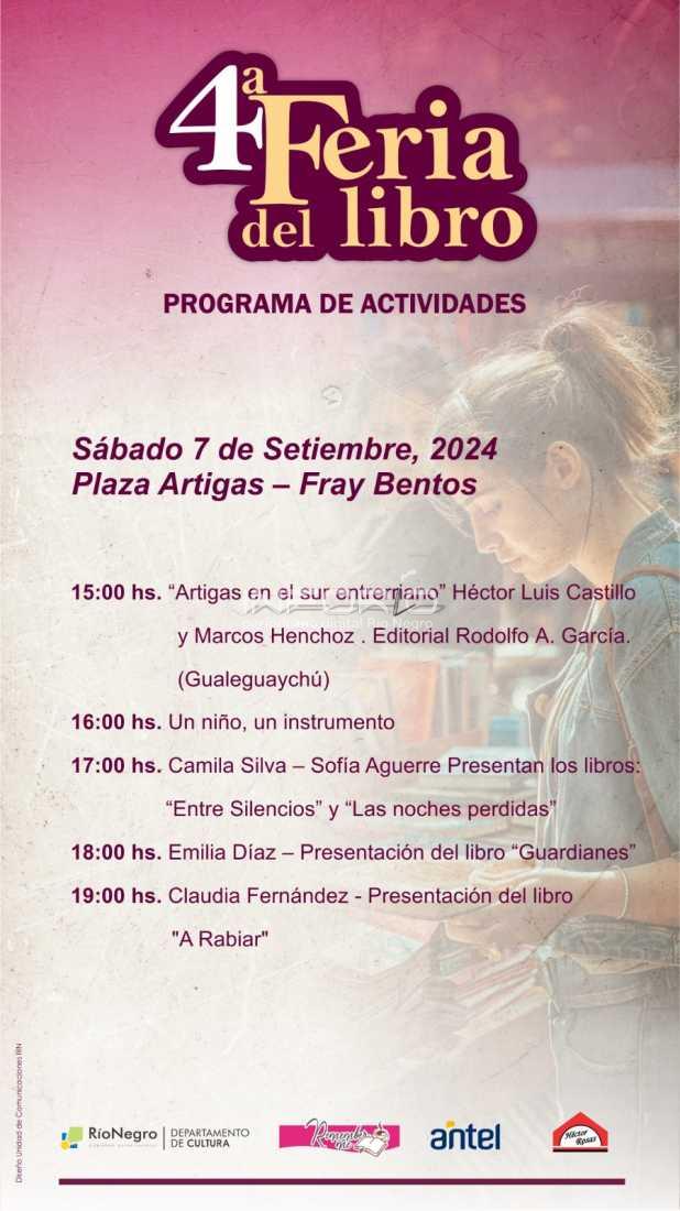 Del viernes 6 al domingo 8 de setiembre, en la plaza Artigas de Fray Bentos, se desarrollará la cuarta edición de la Feria del Libro.