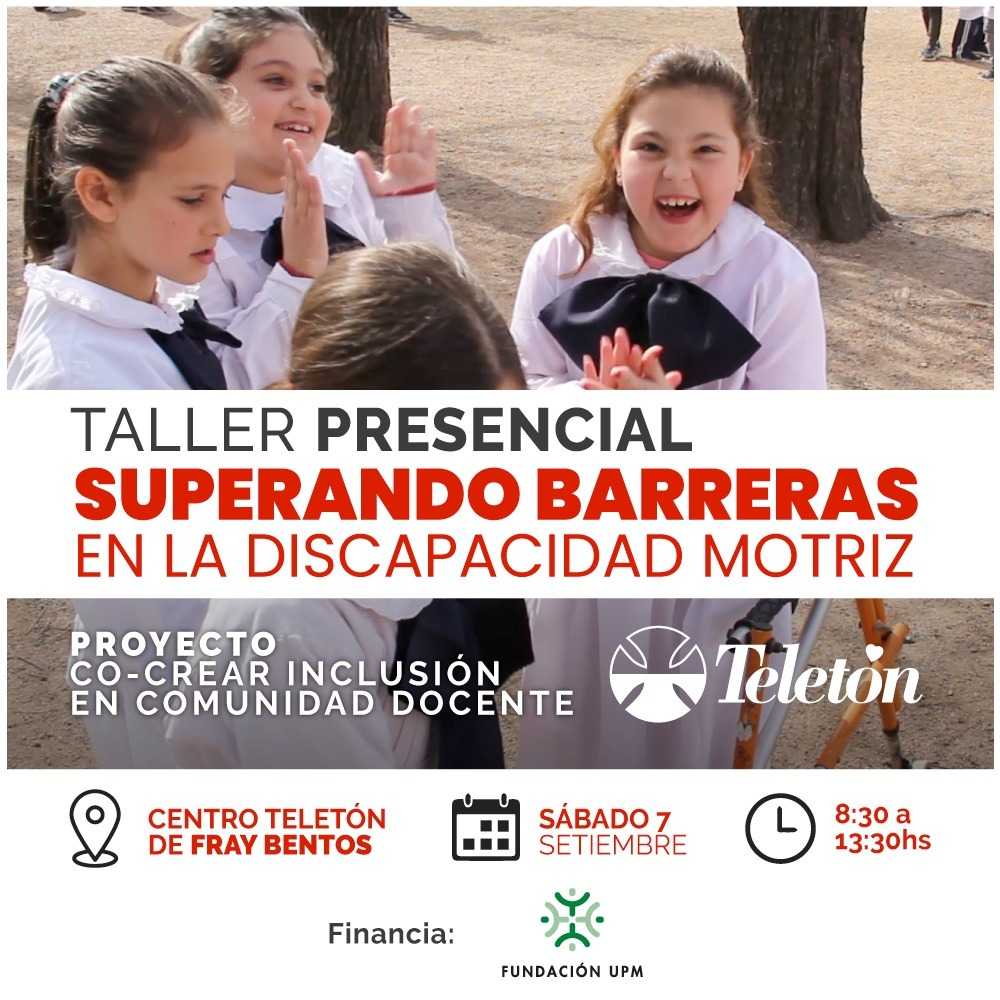 En el marco del Proyecto: “Co- crear inclusión en comunidad docente”, la Fundación Teletón y Fundación UPM invitan a ser parte del TALLER TEÓRICO – VIVENCIAL “SUPERANDO BARRERAS EN LA DISCAPACIDAD MOTRIZ”.