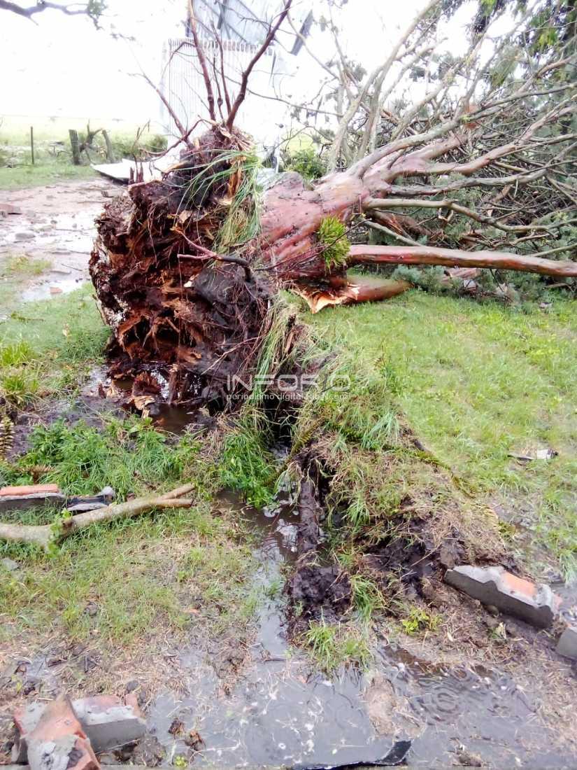 El fenómeno impactó sobre las 5 de la mañana en esas zonas del departamento de Río Negro, donde además del viento las lluvias fueron abundantes en un corto periodo de tiempo.