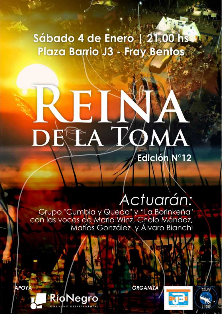 Hoy sábado 4 de enero, desde la hora 21.00, en la Plaza Barrio J3 de la ciudad de Fray Bentos, se desarrollará una nueva edición, la N° 12, de la elección de la Reina de la playa La Toma.