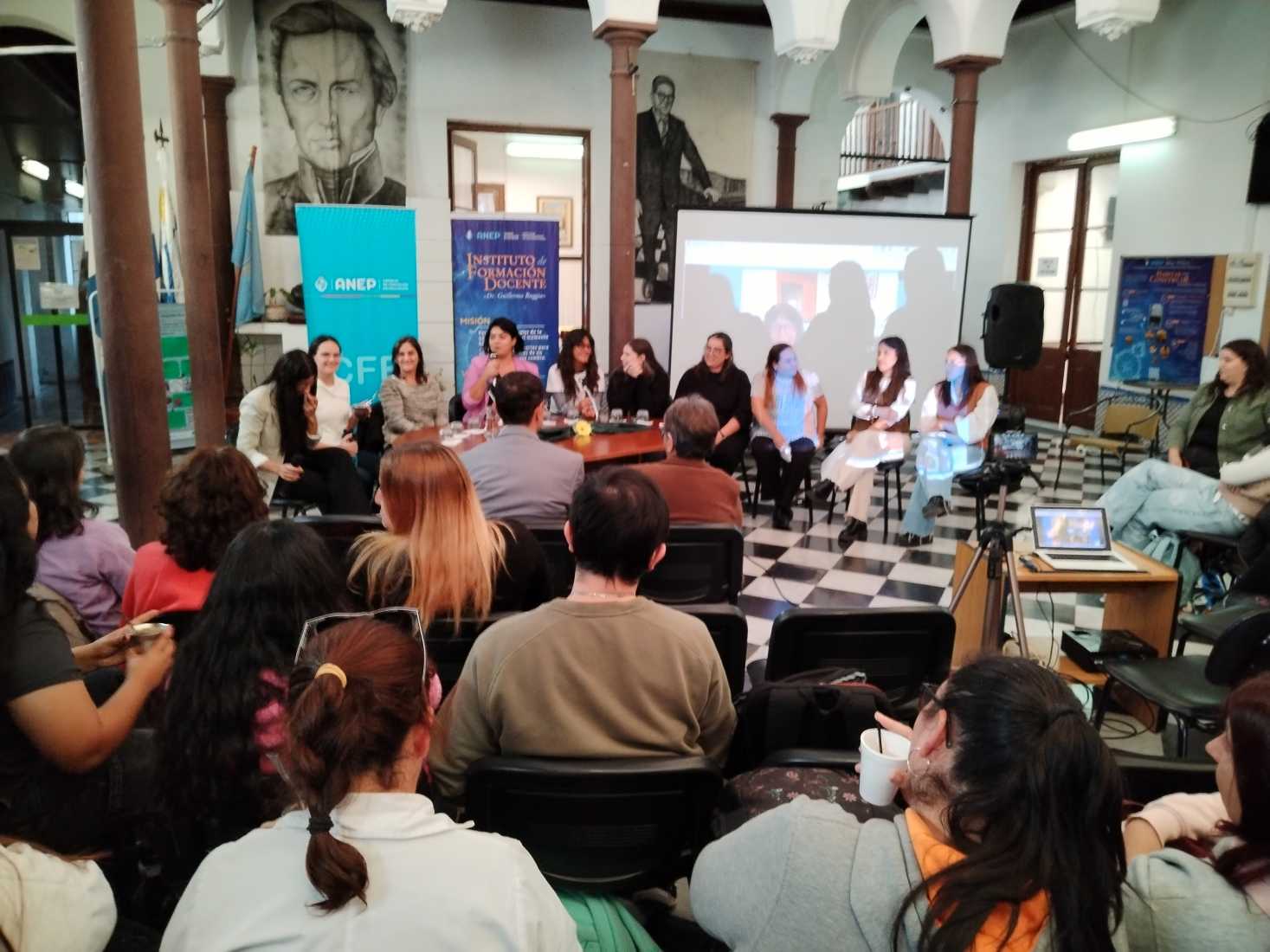 El conversatorio se desarrolló en el Instituto de Formación Docente “Dr. Guillermo Ruggia” de Fray Bentos ante un numeroso público, principalmente docentes y estudiantes del propio IFD.