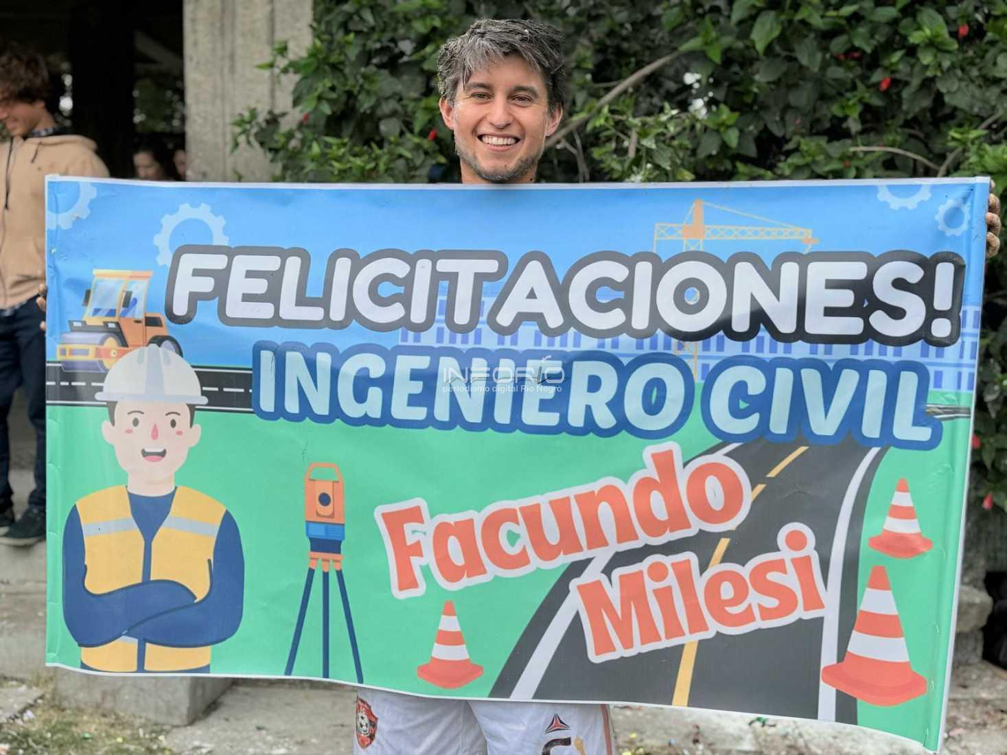 Tanto esfuerzo se vio reflejado en la emoción del pasado 31 de marzo donde, junto a otros dos compañeros de curso, Facundo se recibe de Ingeniero Civil (Perfil Transporte y Vías de Comunicación).