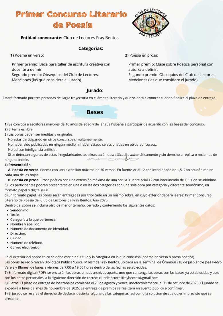 CLUB DE LECTORES DE FRAY BENTOS LANZA CONCURSO DE POESÍA