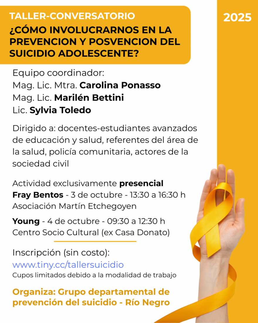 TALLER SOBRE PREVENCIÓN DEL SUICIDIO ADOLESCENTE EN RÍO NEGRO