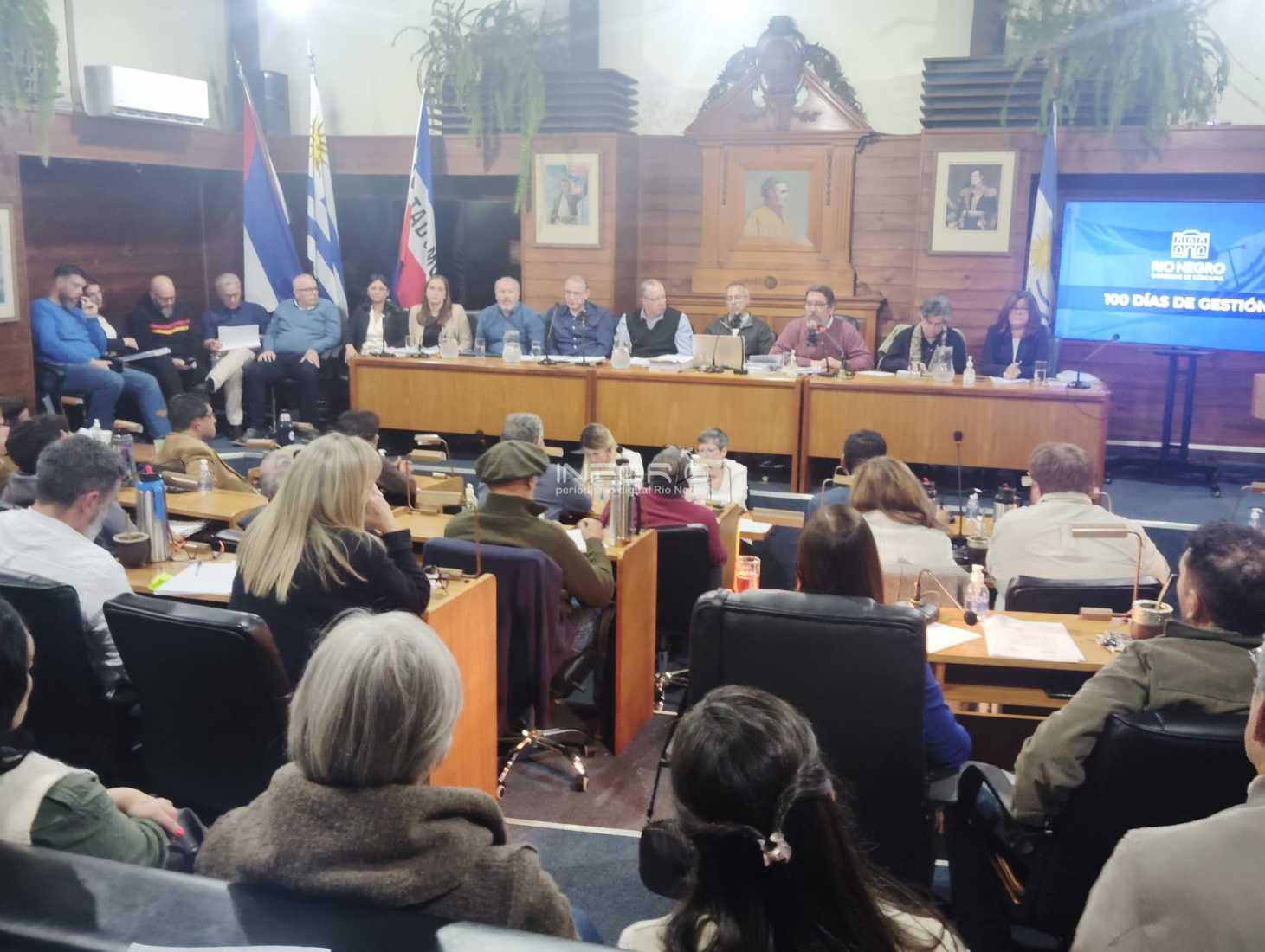Al concurrir con su grupo de asesores a la sede del cuerpo legislativo, en carácter de sesión extraordinaria, reunión que se extendió hasta la medianoche, el Intendente de Río Negro, Guillermo Levratto, dijo que se retira conforme de la comparecencia e intercambio con los ediles, evaluando los 100 días de gestión y con buenas perspectivas a corto plazo.
