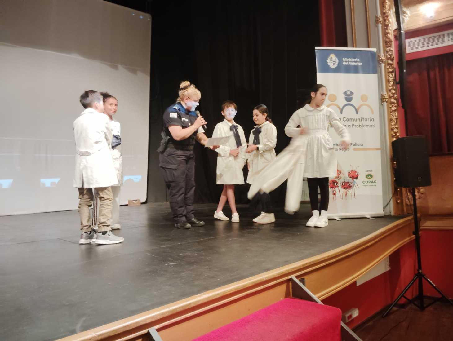En actividad desarrollada en el teatro Miguel Young y en presencia de escolares y docentes, representantes del Comando de Jefatura y Policía Comunitaria de Río Negro llevaron a cabo una jornada de integración dirigida a Educación Primaria.