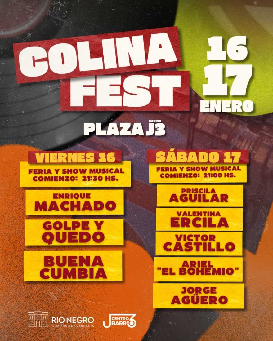 Este viernes 16 y sábado 17 de enero se realizará Colina Fest en la Plaza del Barrio J3, una propuesta abierta a toda la comunidad que combina feria, música en vivo y encuentro barrial.