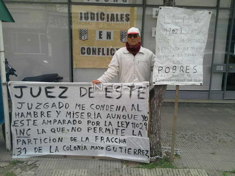 Esta mañana Eduardo Arbiza, un productor rural de la Colonia Mayo Gutiérrez se encadenó en frente al Juzgado letrado de Young en reclamo en contra de una sentencia judicial.