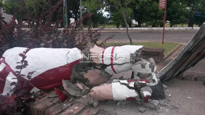 Sorpresa causó esta mañana en el ingreso al histórico barrio Anglo, el monumento al jugador que fuera inaugurado por el Club Atlético Anglo con motivo de sus 100 años en el 2007.