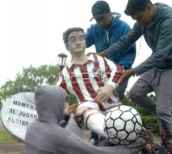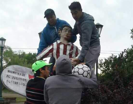 Tras la indignación por el acto de vandalismo que destrozó el monumento al jugador de Anglo, que en la pasada madrugada fue arrancado en la plaza; un grupo de jóvenes hinchas concurrió al lugar y levantaron el monumento.