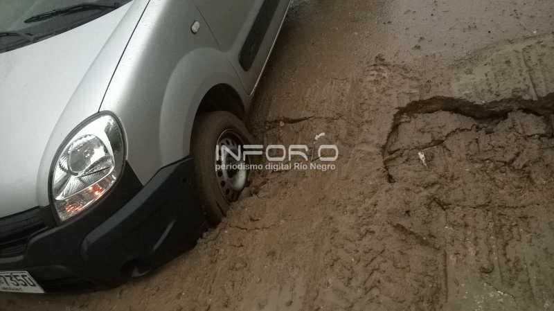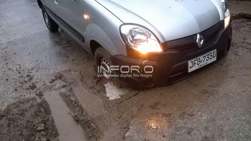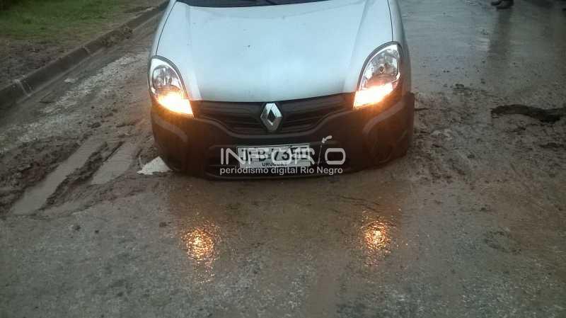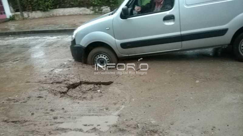 En ellas se ve como una camioneta Renault Kangoo matrícula JFB 7350 cayó en un pozo que un hay en dicha esquina. El hecho ocurrió esta mañana próximo a las 7:45 y se dio tras las intensas lluvias.
