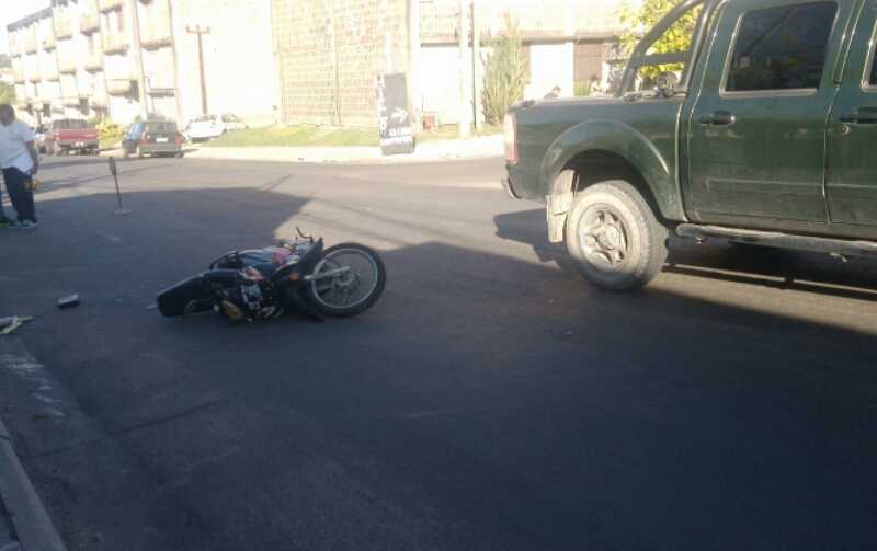 Otro siniestro de tránsito se dio esta mañana próximo a las 9hs en la esquina de Roberto Young y Haedo. Por calle Roberto Young con dirección norte circulaba la camioneta Ford Ranger matrícula KPA 1452 que era conducida por una mujer que llevaba de acompañante en el asiento trasero a su bebé. En tanto por calle Haedo lo hacía un hombre mayor que conducía la moto Yumbo 110cc matrícula JFC 322. En dicha esquina se dio la colisión, que determinó fractura expuesta para el motociclista, y desperfectos varios. Rápidamente la ambulancia trasladó al hombre al hospital local y en el lugar actuó Policía Técnica.