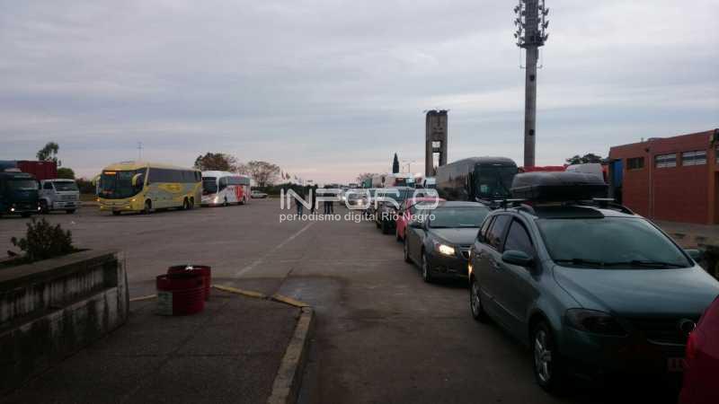 Desde tempranas horas hay una larga cola de automóviles, debido a que se está trabajando con poco personal por parte de la oficina de migración argentina que es la encargada de atender la demanda en este caso.