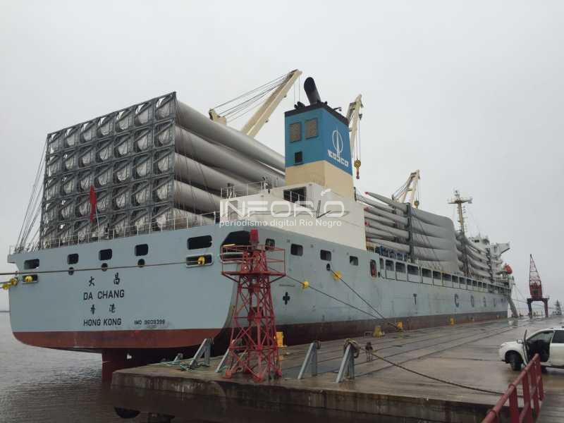 Tras la llegada del primer buque a principios de junio, llegó este segundo buque que principalmente trae aspas desde China. De la operativa están trabajando, personas que integran la bolsa de trabajo. La misma está a cargo de Schandy y Rioestiba.
