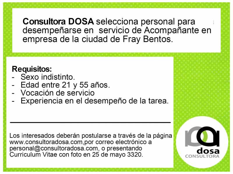 Consultora DOSA está realizando selección de personal para una empresa de servicio de acompañante en Fray Bentos.