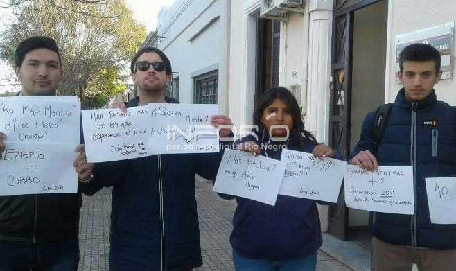 Un grupo de estudiantes de la escuela de enfermería se movilizaron en la tarde de este viernes frente a la sede en Fray Bentos reclamando la entrega de los títulos del curso realizado.