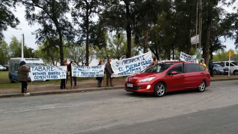 Con varias pancartas un grupo de vecinos reclamó que es inadmisible que al municipio de Young, se le haya otorgado barrido y cementerio por parte del gobierno de Oscar Terzaghi en Rio Negro.