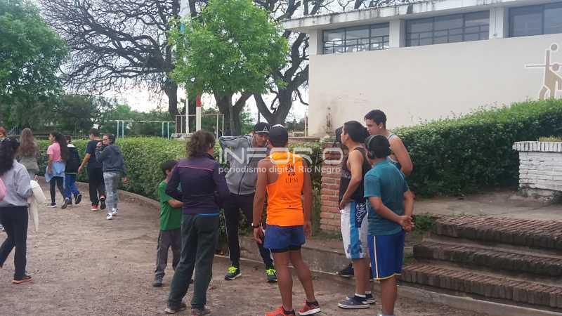 Sorpresa en niños y adolescentes que se encontraban en la pista de atletismo del liceo Capdevielle cuando sobre las 18hs llegó el atleta olímpico Andrés Zamora para entrenar en el lugar.