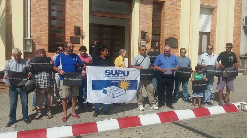Bajo el slogan #NiUnPoliciaMenos se movilizaron a las 10 de la mañana a frente a todas las jefaturas del país los integrantes del Sindicato Único Policial del Uruguay (SUPU).