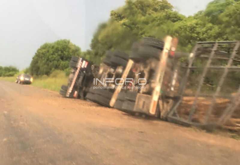 En la tarde de este lunes InfoRIO dio cuenta del vuelco de un camión que circulaba cargado de palets por ruta 25 desde Young hacia Menafra y a la altura del kilómetro 40, zona del valle Soba, el camión mordió la banquina y se dio vuelta. Este hecho ocurrió sobre las 15hs y el conductor resultó sin lesiones de entidad.