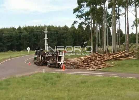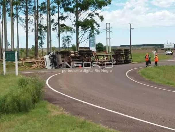 Cuando hace menos de una horas publicábamos que se habían producido 3 vuelcos de camiones en ruta 25, este mediodía se registró otro vuelco de un camión con madera en dicha vía.