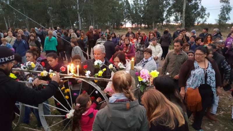 Más de un centenar de personas que caminaron con flores y velas hasta la puerta de la chacra de María Cristina Viera