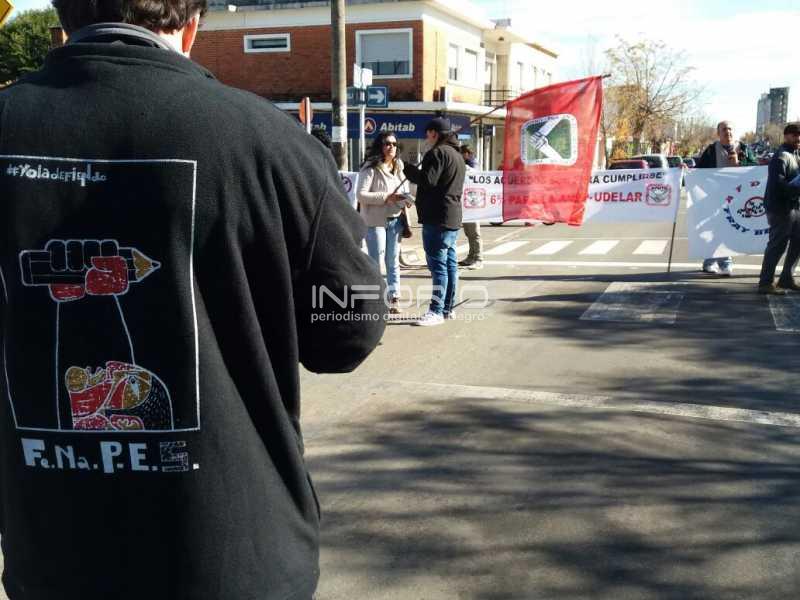 En Fray Bentos hubo en la noche pintadas en distintas calles de la ciudad y esta mañana se concentraron frente a la Escuela Técnica, para luego realizar una volanteada en Av. 18 de Julio frente a la terminal para informar a la población sobre los reclamos.