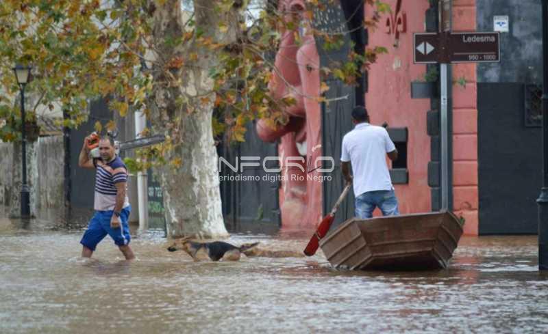 Paysandú continúa bajo agua, aunque el río Uruguay ayer comenzó a disminuir el nivel de su altura, pero apenas en 7 centímetros, manteniéndose casi 3 metros por encima de la cota de seguridad. Desde numerosos balcones, techumbres que solo habitan perros o campanarios, ya no se ven plazas ni calles, solo el agua amarronada y antiguos vehículos en bamboleo. Algunas personas no tienen más remedio que seguir mojándose para ir a sus trabajos o trasladarse a las casas que no quieren abandonar por temor a los robos.