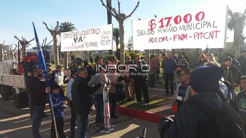 ADEOM en la proclama leída reclamó por un salario mínimo municipal de 17 mil pesos. Se pidió que se pague el 100% del salario vacacional, que el ingreso de funcionarios sea por concurso o sorteo, que se capacite al personal y que haya una carrera funcionarial entre otros puntos.