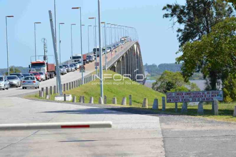 La avanlancha de turistas está desbordando las instalaciones del puente San Martín. Gendarmería impidió por seguridad que los vehículos queden estacionados sobre la estructura. La fila del lado argentino se extiende más allá de los 3 kilómetros y los automovilistas siguen llegando con intención de cruzar a Uruguay.