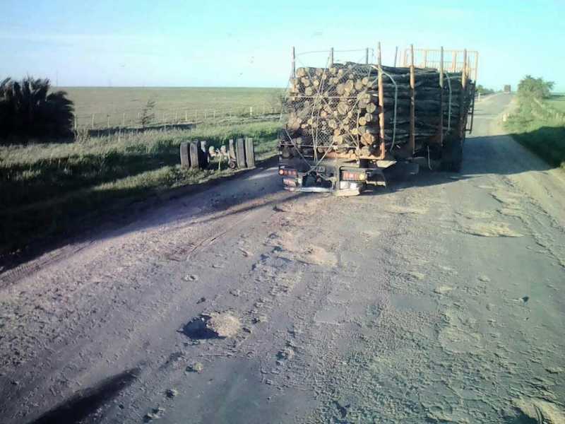En la jornada de este viernes un camión cargado de madera, rompió el eje de la zorra en ruta 25 en el tramo entre Young y Algorta.